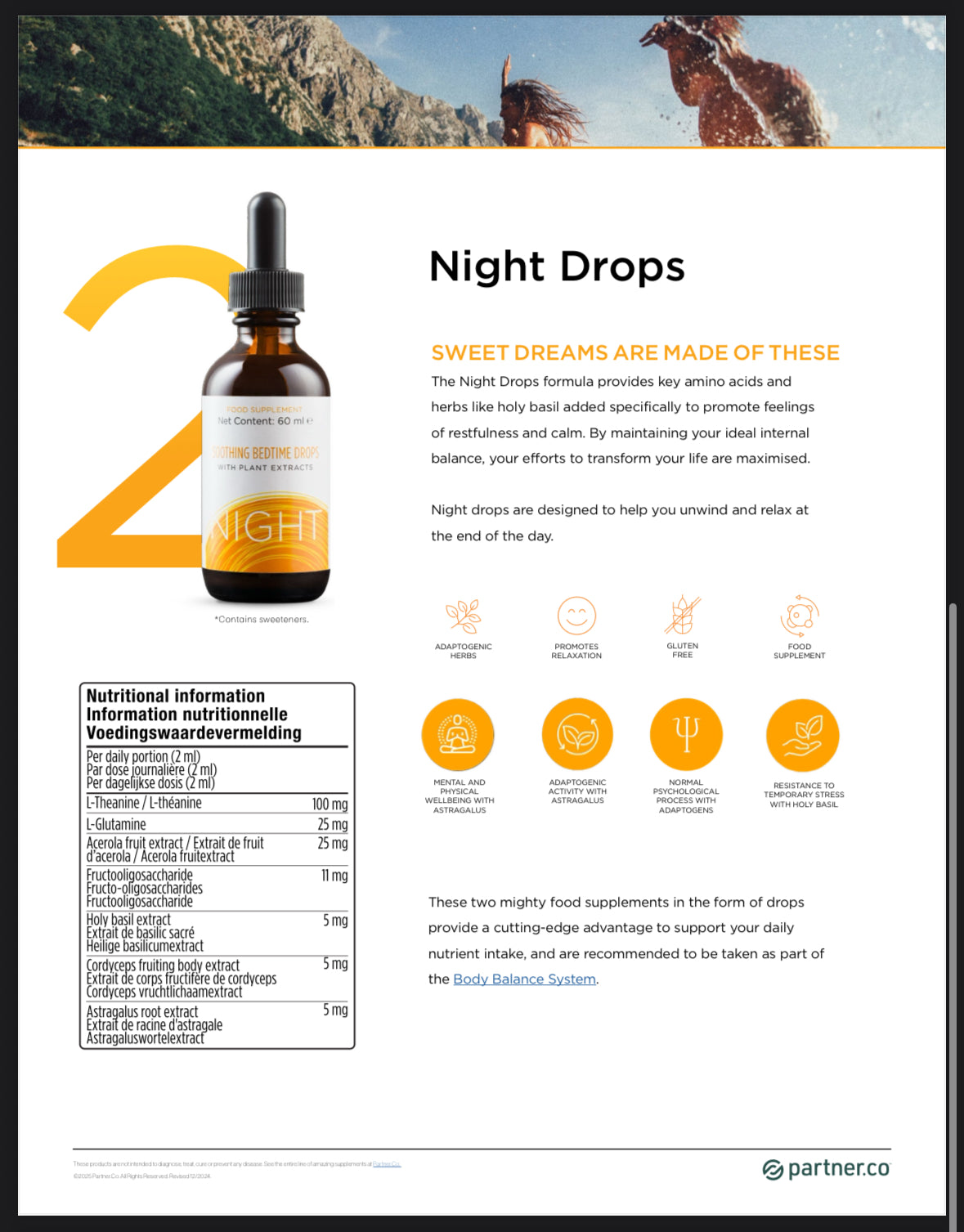 Night Drops hjelper deg å slappe av og finne indre balanse etter en lang dag. Inneholder adaptogene urter og aminosyrer som støtter kroppens naturlige restitusjon.